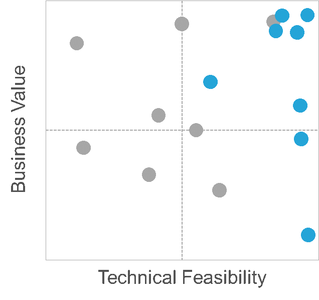 - Work with users to assign business value and technical feasibility for each use case