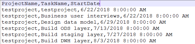 For the setup we will use a fictional company, KTS LLC, with SharePoint and Project Online site collections located at https://ktsllc.sharepoint.com/. In Project Online I’ve created a project, ‘testproject’, and made some tasks: