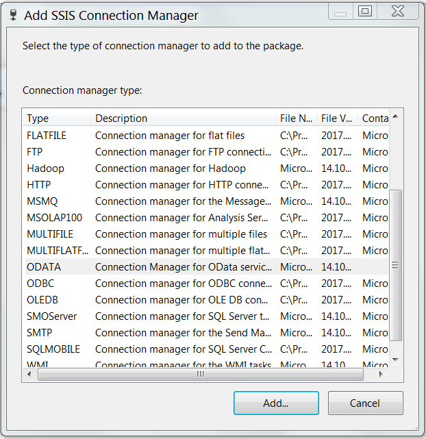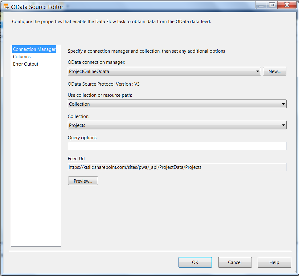 On the surface, connecting to Project Online via SSIS is straightforward: Simply create an OData connection manager combined with an OData Source and then write to a database or flat file. However, this seemingly easy solution can have its share of problems, as experienced by colleagues and me while working on a project for one of our clients.