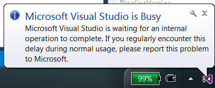 For me, the problem was very repeatable, and frustrating. Even after waiting an hour, VS would not recover, and I would have to manually kill the task in the task manager and receive the prompt that VS is not responding.