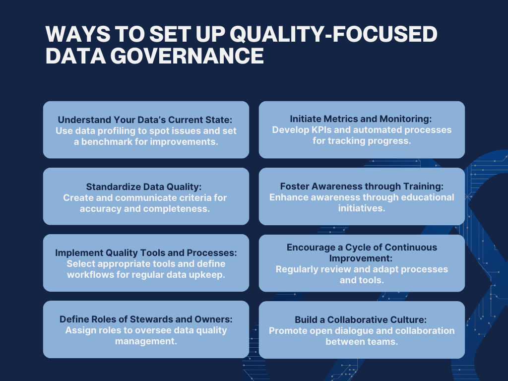 Following these tips will bolster your data governance efforts, consequently improving data quality and analytical insights, and further harmonizing your business strategies with its overarching goals.