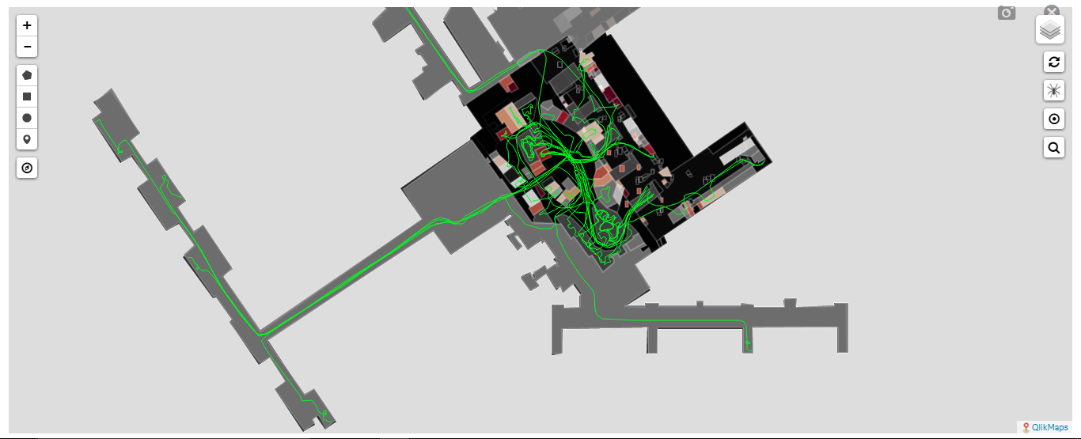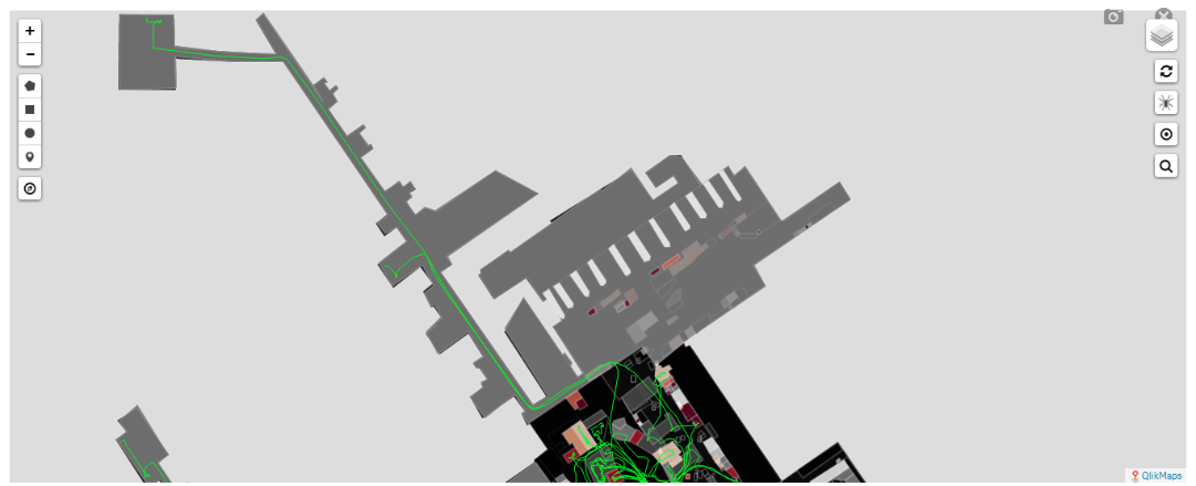 Using complex internal building mapping to confirm the layout and dimensions of the building and its facilities, the new “deep zoom” function in QlikMaps has allowed MSTRMND & MapMechanics, a high value geospatial content provider in the UK, to visualize a traveler’s movement within the airport terminal. By better understanding how travelers move throughout the airport, airport retailers can customize their offers and products based on where people spend their time and airport operators can take measures to improve customer satisfaction.