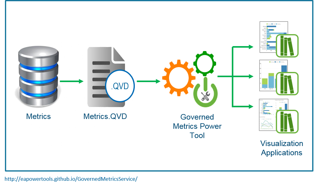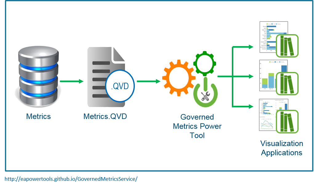 The architecture for this product has metrics stored externally (Excel spreadsheet, a database table, etc); a .QVD is built from this; and the Governed Metrics Power Tool is installed on the server, and that’s the interface you use to apply the metrics library across applications.