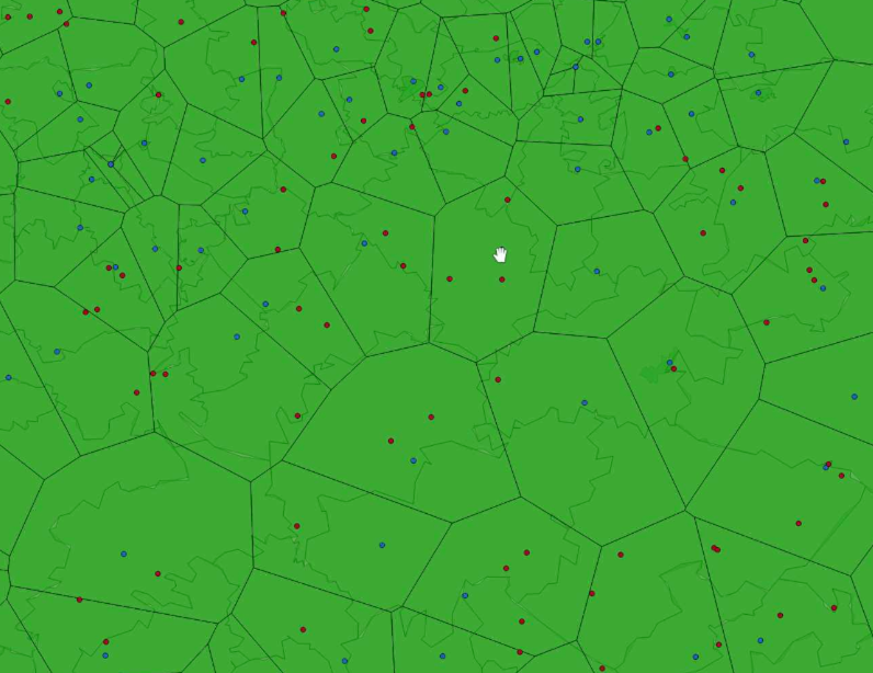 This company can now determine which of their customers fall within the voronoi polygon and establish localized markets that are more logically distributed.